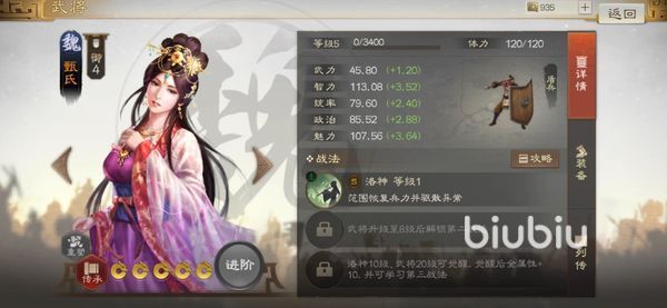 2023年02月15日 14:39 来源:电魂正大蛇丸甄氏在这个游戏中是魏国的一名非常貌美的武将,她的外观上看起来非常的柔弱,通过其面板能看出来,她的武力不行,但是在智力却是非常不错的,不少玩家也是比较喜欢这个角色的,对三国志战棋版甄氏战法搭配推荐也是比较关注的,如果大家在使用她的时候,但是却不知道带什么战法比较好的话,就一起来看看这期的介绍吧。