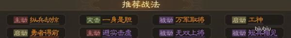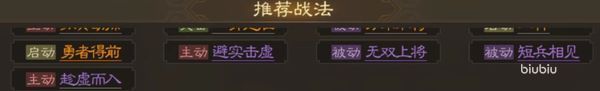 除了上面介绍的两个之外,大家还可以再带上纵兵劫掠,一身是胆,万军取将,工神,勇者得前,避实击虚,无双上将,短兵相见以及乘虚而入,这几个战法也是特别适合该角色的,他们有着各自不同的特点,但大部分主要是给角色提供伤害加成效果。