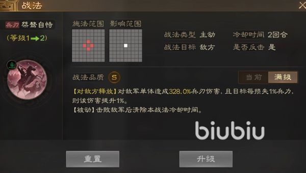 而且只要敌人在战斗中损耗1%的兵力的话,角色的伤害还能再提高1%,他还有一个被动技能,就是当这角色使用这个技能消灭敌人,就可以将其冷却时间直接清除掉,也就是说下一个回合还能继续使用。