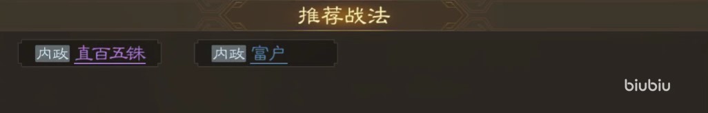 虽然其传承战法有不错的对敌减益,但一般张纮本人是用不上这些技能的。推荐搭配“直百五铢”和“富户”,顾名思义这两种战法也都是可以提升铜钱产量的。