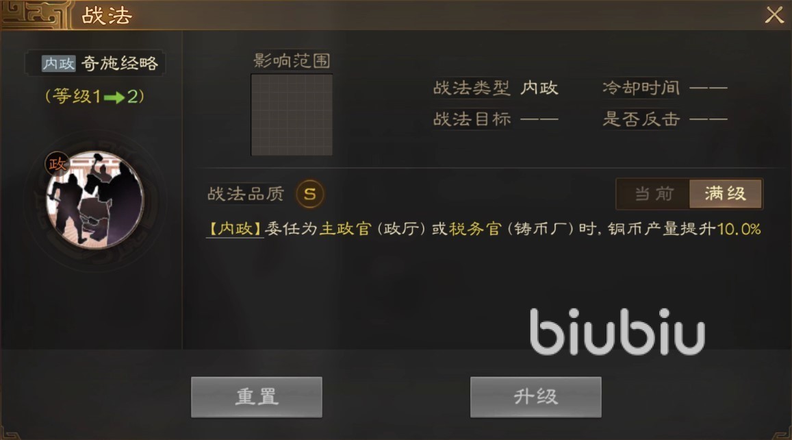 以上便是张纮战法搭配推荐的相关内容,张纮的战法搭配相对容易许多,除了自带的“奇施经略”外,搭配“直百五铢”和“富户”来把铜钱产量尽可能得的提高就行了。目前游戏内加铜币产量的战法并不多,后续有更好的金色品质的,也可以替换掉。