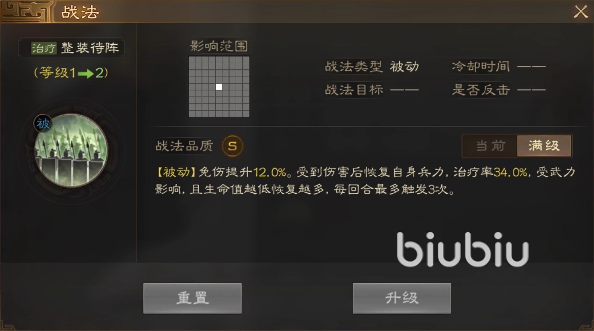 更不用提其自身特性也会带来小额免伤和半血后的全属性提升,此外对城防单位也有加成,如果组建攻城队伍的时候,也是非常不错的前排选择。