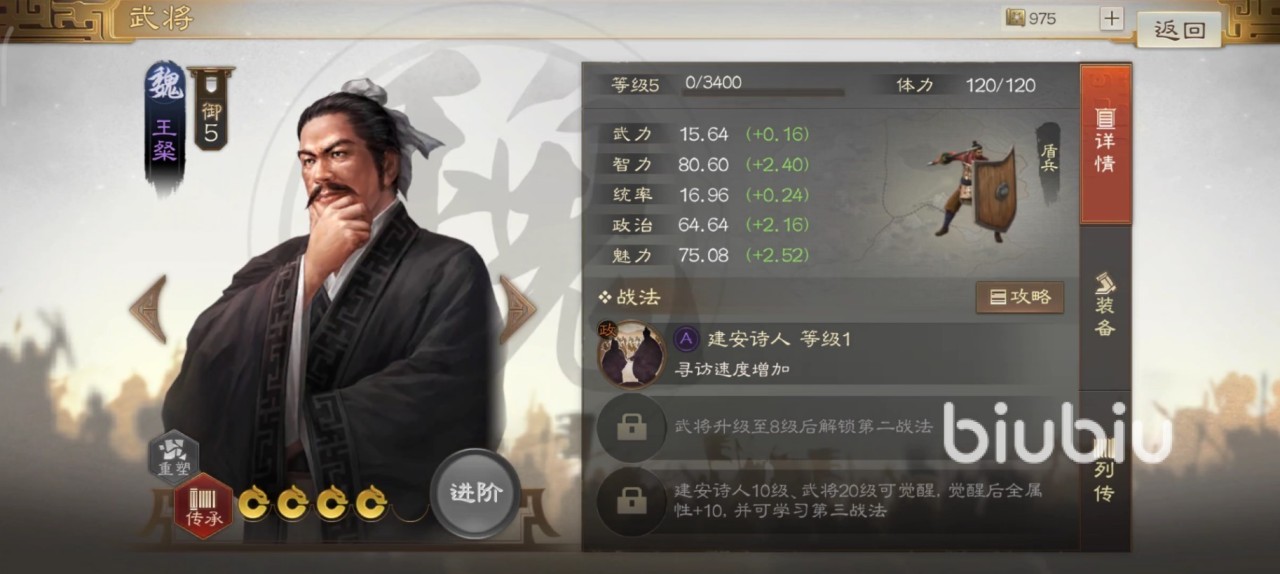2023年02月15日 15:05 来源:梅肯生比比鸟王粲是汉末文学家,有着很高的名望。那么三国志战棋版王粲怎么样呢?游戏里作为魏国谋士的他,统率盾兵,但似乎并没有太多作战能力,这里我们便结合他的属性、战法来分析下王粲的人物定位,感兴趣不妨一起来看看吧!