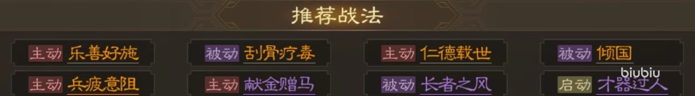 最主要的是,向宠的自保能力很强,拥有的特性都是为自身提升免伤效果的,可以更好地保障自身的存活,另外,他的战法适用范围也很广泛,乐善好施、长者之风等等都是可以使用的,下面就有详细的推荐战法,玩家们可以根据自己的玩法以及发展发祥来进行挑选,每一个都是很实用的。