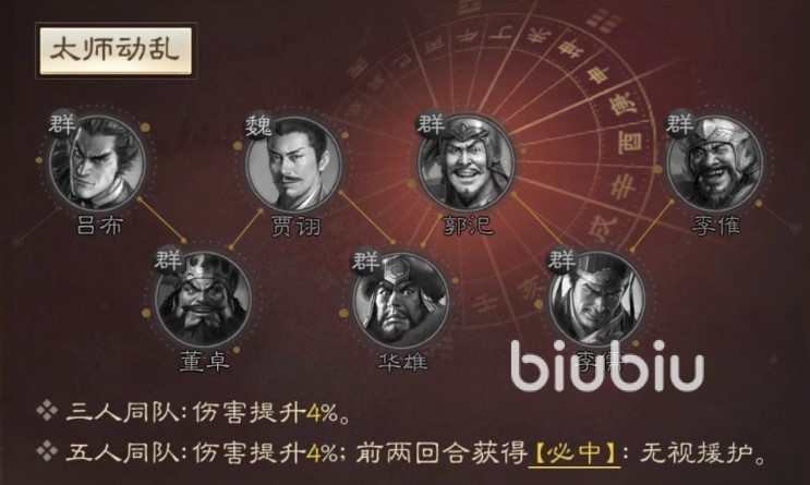 同时这个就是有组队加成的,他在与吕布、董卓、华雄以及李儒等一起上阵的时候,不仅能起到增伤的效果,而且还会有两次技能必中效果。而此角色的特性就是对城防类型的敌人造成的伤害会更高一些,对战的时候可以提升一定的伤害,不过其受到的伤害也会提高一些。