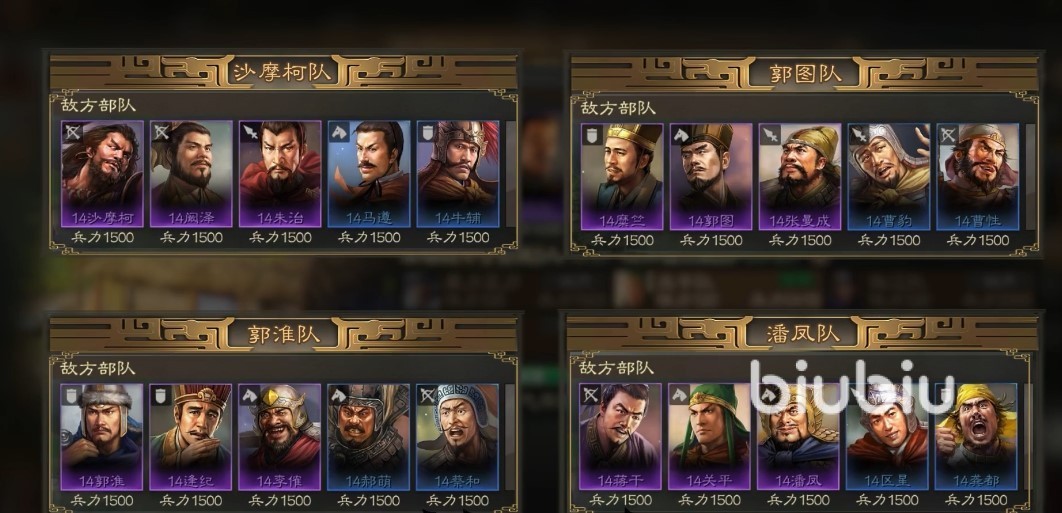 在确定了我们的阵容搭配后,还要看看四级地里面敌军的情况,目前的4级地敌人大多是下面这四个阵容。1、潘凤队,这个队伍输出蛮高的,3个紫将的爆发都不错,如果我方输出可以在前期秒掉其中一个,就会很容易许多。2、沙摩柯队,这套阵容的输出很高,但整体其实偏脆,只要输出上去了就好打了,不足的话战损就多了。3、郭淮队,输出不多,只要前排坦克位能抗住就好打很多。4、郭图队,偏脆皮,输出也一般,可以比较快的清场。