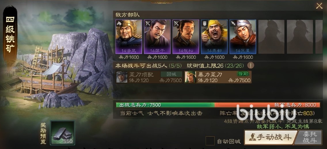 大多时候菜刀流用于4级地开荒,是一种全输出的暴力菜刀队,靠着把堆输出堆到最大,然后第一个回合就将对面威胁最大的单位直接毙掉,所谓的最好的防守就是进攻。保持尽可能低的战损是前期开荒很重要的思路,选择一些难度低的敌方守军,性价比收益更高。损耗的兵力后面都要招募回来,因此为了避免损耗虐菜是必须的。在对四级地发动进攻之前,先看看当前队伍实力是否稳健,能够在很低战损的情况下完成开荒。武将等级尽量在12级及以上,自带的战法至少5级,携带的第一个战法至少3级,单个武将带队兵力至少1500,这些条件都满足就能放心迎敌了。