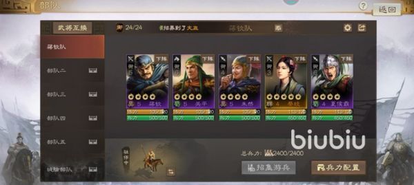 对于新手平民玩家来说,这个阵容建议一定要尝试一下,大家需要搭配上周仓,曹仁,朱然,关平,蒋钦这五名武将,大家若是再游戏中把这五名武将放在一起的话,他们就能组成一个非常厉害的零氪阵容了,这些角色的获取都不需要玩家充值只需要大家跟着主线任务去完成就能获得了。对于新手玩家来说,只需要完成主线里面的前三章就可以获得这些角色了,另外还有审配,夏侯霸等角色也能获取到,不过前期的话大家直接用前面介绍的五个角色来游戏就可以了,等到后面再拥有审之后,将朱换下来,他在游戏中的强度会更高一点,比较适合后期来使用。另外就是大家若是获得周仓之后,不要让他直接上阵,可以先等政厅的等级先达到5级之后,然后再将部队防御有达到27级,接着再让周上阵就完成了,他需要大家的主城政厅达到对应的等级之后,才能带来比较好的强度。