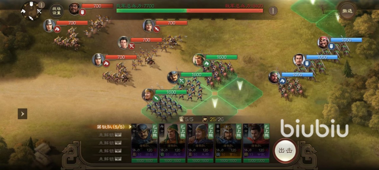 战局中采用的是战棋模式,并不是传统意义上回合制与自由对战,每一名出战武将都相当于是棋子,战场被分割成了一块块棋盘。需要先移动棋子到可以攻击位置才能输出。这就需要考虑各自攻击距离和战法伤害距离等。因为很多战法都是范围伤害或者是指定几格距离以内,如果移动不到位就相当于输出失败,或者是效果极差。