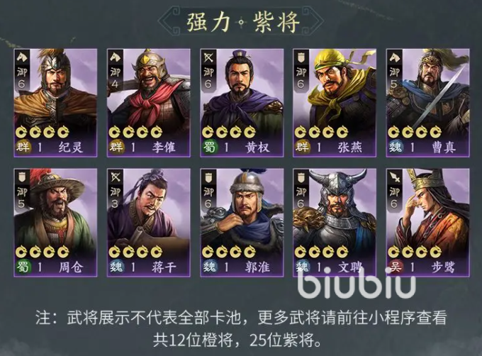 最后的紫色武将关平周仓曹真还有步鹭这些属于紫色的天花板,尽量选择这个角色开局,即使这个角色后面没用还能用来学习技能。
