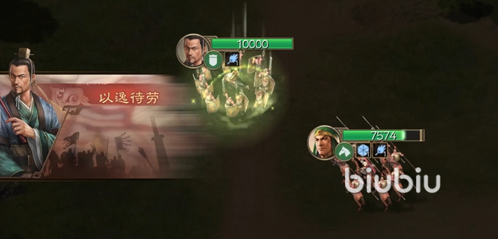 法正的战法是以逸待劳,通过对己方的军队释放能够恢复兵力,而且治疗率高达138%,作为奶也是相当不错的。而且这个效果是根据智力来的,提升法正的智力属性,治疗效果更是能够蹭蹭往上涨。在治疗的同时还能够添加一个抵御效果,屏蔽一次伤害。这个战法没有cd,释放的范围是圆形范围两格,在前中期缺奶的情况下很好用。