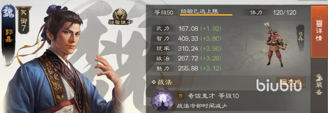 对于开服的平民玩家来说,肯定没有配置啥好的战法。然后郭嘉这个角色就自带了强大的战法,不但可以对敌人造成高额的谋略伤害,还可以提升自身的伤害,另外还能减少所有战法的冷却时间,释放范围很广,是非常强大的卡牌。另外他还有个辅助技能可以为队友们加血,如果队友血量不足,则可及时加血,是个非常万金油的角色,可奶可辅可作为主C使用。