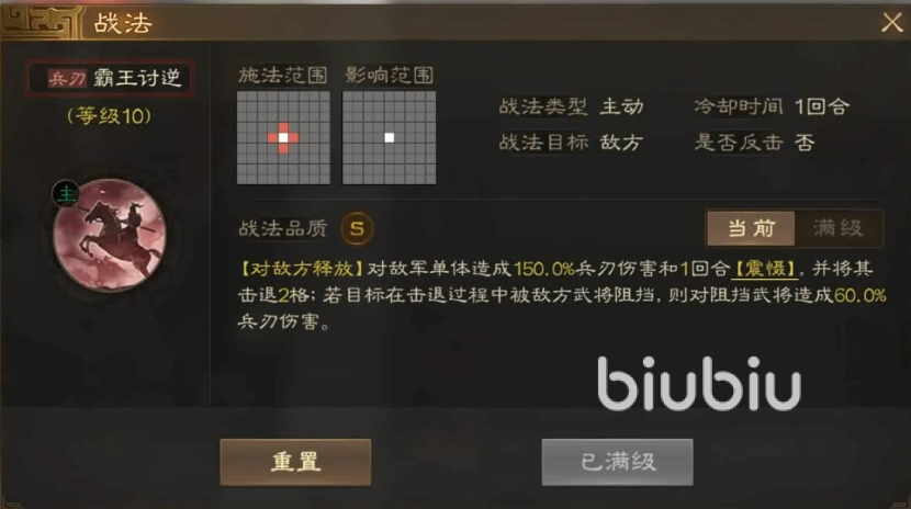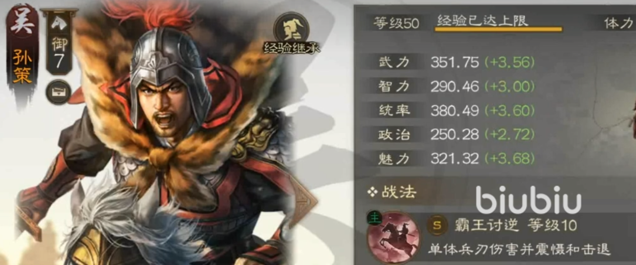 只有知道这个武将的技能是怎样的,才能助我们更好地上手。孙策的主要战法是霸王讨逆,是非常强大的控制技能,可以直接将敌人击退两格并造成一定的伤害。所以该武将可以放在前排,用来阻止敌人的前进。