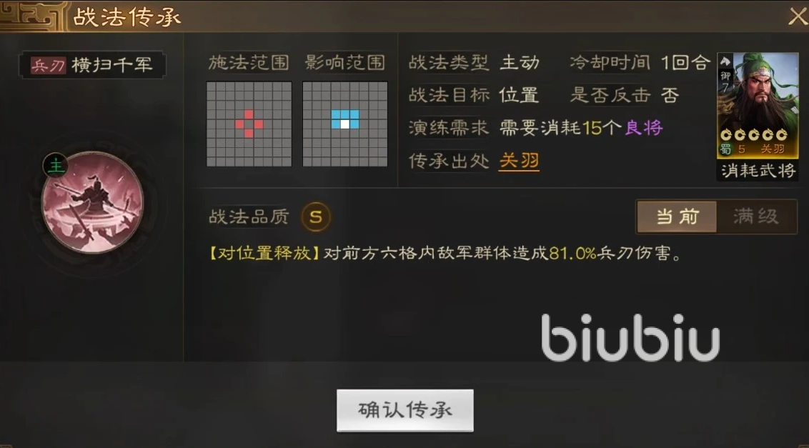 除了自带的战法之外,还有传承战法,是一个输出型的技能。使用后可以让六格内的敌人造成百分之八十一的伤害,拥有不俗的输出,令人感到闻风丧胆。