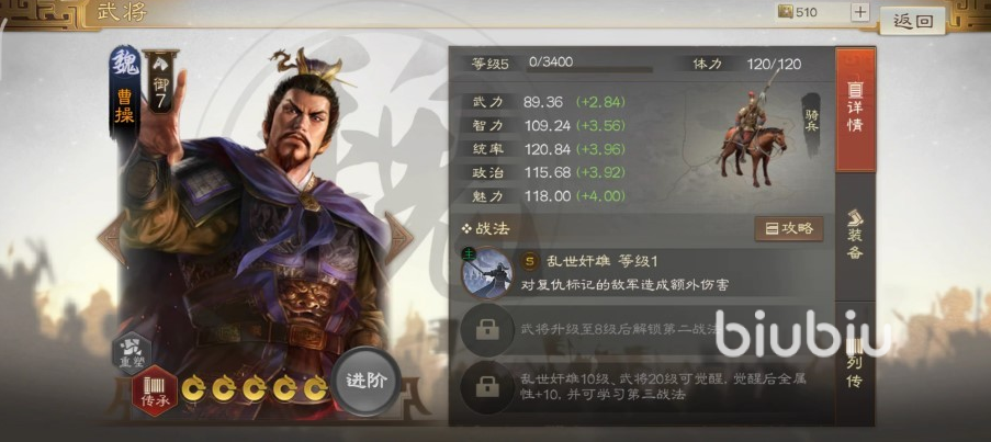 曹操统率值在所有武将中都属于最高的一类,自身也属于比较肉的类型,而且技能效果非常独特,通过不断消耗和叠加复仇来对周围敌军造成极高输出。在其他技能选择方面可以偏向进攻,也可以偏辅助,要根据抽取情况来确定。另外两名辅助王异偏向于进攻,可以让我方输出核心获得连击状态,如果给夏侯渊使用同样触发被动后输出爆炸。而甄氏则是用于加血,有这样辅助在,前排将会扛得更久。这样整套阵容输出,肉盾和辅助全部具备。