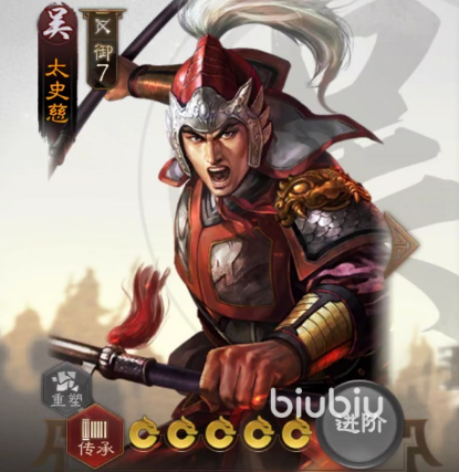 最后是太史慈,太史慈没有增益效果,他的作用主要是用来保护队伍力的其他成员,他是一位保护性弓手部队将领,他的战法效果在每次造成伤害之后都可以降低目标的智力和统帅率之后还能让周围一位将领获得一回合无敌的效果,实战中只需要将他和孙尚香放在一起,就可以让孙尚香无所顾忌的输出了。