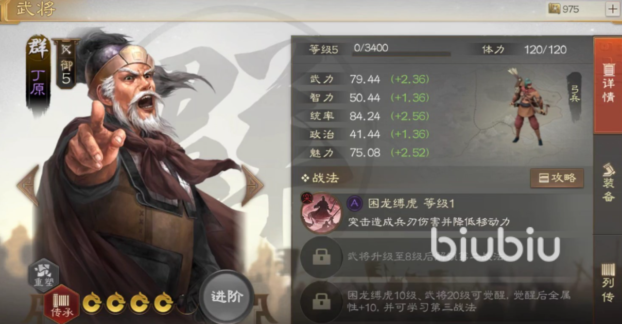 每个武将都拥有自己的特性,大家只需要合理地利用它们的特性,就可以释放出更强大的视力。胡车儿的特性叫做勇将,能够增加自身的统帅值,也就是管理更多的枪兵,防御属性大大提升。另外一个特性则是豪杰,可以增加输出能力。所以作为一名主C,大家在组合队伍的时候,可以给他配上几个防御英雄以及辅助角色,例如丁原,可以抵挡敌人伤害。