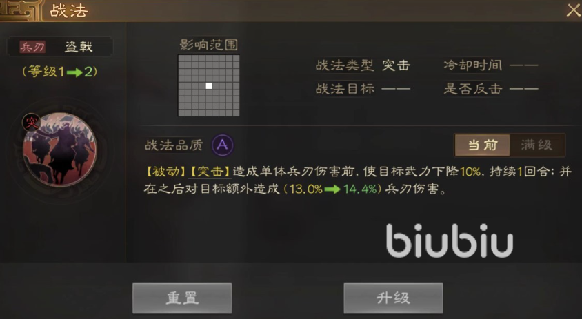 胡车儿带有一个战法名为暴敛四方,从名字上就可以知道这个战法是群体伤害技能,可以对周围一格内的敌人造成高额的兵刃输出。所以在面对群雄的时候,使用胡车儿便可轻松以一打多,不管周围的敌人有多厉害,都能迅速制服,不用担心被人用车轮战。另外他的被动战法叫做盗戟,可以降低敌人的武力,还能提升自身输出。