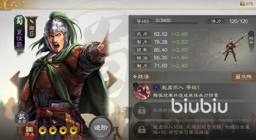 当你的队伍里的恢复以及防御能力变得很强之后,当然还少不了输出伤害很高的武将,这样才能顺利地击败对手。这里推荐大家使用夏侯霸,他身为一个强力的输出武将,主要统领的是枪兵,拥有不俗的武力,战法可以降低敌人的防御值并造成额外输出,伤害爆炸。如果搭配上其他的提升伤害的战法,然后再由华佗来恢复血量,便不会倒下。