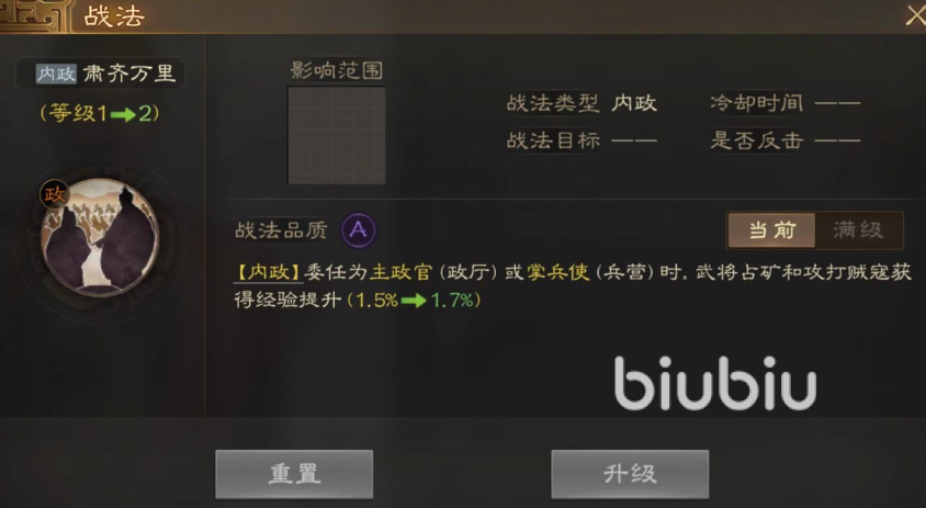 他拥有肃齐万里的战法,当他主管兵营的时候就可以触发这个技能,你带着他去攻打其他倭寇或者占领矿场的话,便可获得更多的经验值。当你将他培养更高的等级之后,便可搭配上靖难这个战法,同样可以大幅度提升经验的获取速度。可以助你迅速地提升自身以及其他武将的等级,前期在开荒的时候,攻打实力不强的倭寇,便可助你快速觉醒。