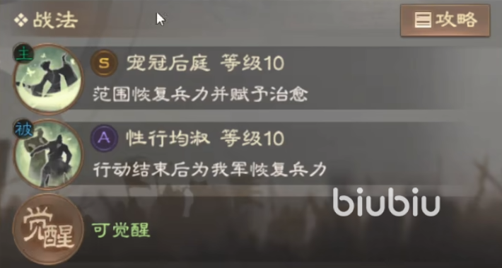 其实大家都知道武将的区别就在于它们的战法,每个武将都有自带的战法。不过后续若是想要更多的战法的话就需要进行觉醒,其实战法觉醒很简单,你只需要培养好武将,将其等级升到8级后便可以解锁第二个战法,战法可以在不同的武将之间继承,你可以合理地搭配不同风格的战法,最大限度的提升一个武将的实力。
