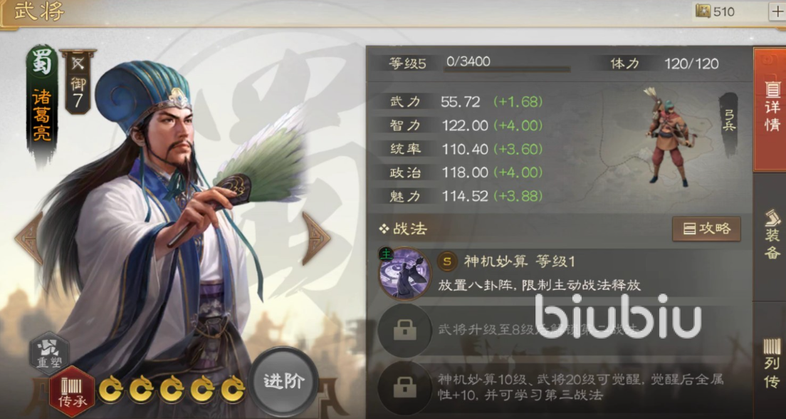 由于不同国家的阵容能够带来额外的羁绊属性提升,所以建议大家用同国度的武将。这里可以用黄忠、诸葛亮、法正以及廖化还有诸葛亮等武将,这几名弓箭类角色都有着良好的远程输出能力,很适合用来打后期。毕竟它们的持续作战能力很强,越打到后面伤害就越高,然后廖化的话则可作为坦克使用,为其他的输出角色承受更多的伤害,做一手后期保障。