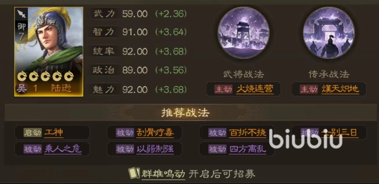 在适用范围上就很广泛,新出现的武将诸葛恪就非常适合,诸葛恪特点是需要根据对方身上异常状态数量来提高伤害,这样就能腾出前三回合时间来使对方身上状态叠加到非常高程度,这样等到智力提升上来之后,就可以持续不断输出。同样适合的还有陆逊,作为东吴阵营强势角色,陆逊战法火烧连营不仅伤害高,而且还能将灼烧状态传递出去,也需要大量智力加成。