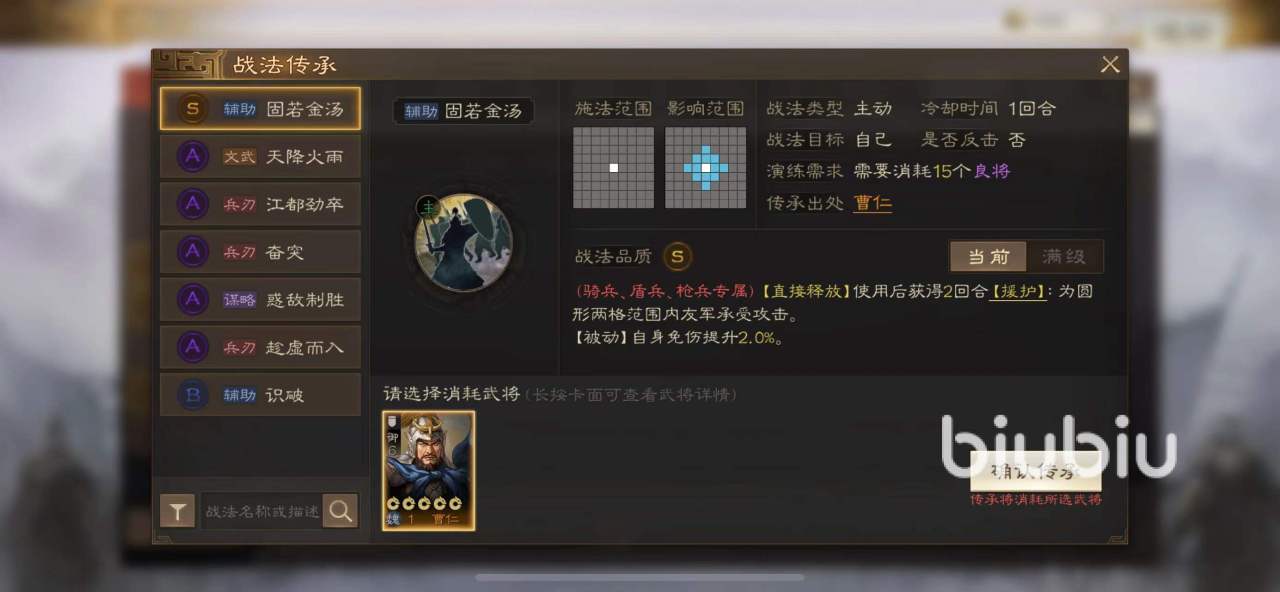 当你获得这个战法之后,便可以让其他的武将去学习。这里更加建议使用陆逊,他是单体输出能力很强的枪兵。本身的爆发伤害就很高,继承技能之后便可爆发出犹如洪荒猛兽一般的实力,瞬间夺取敌人首级与瞬息之间。