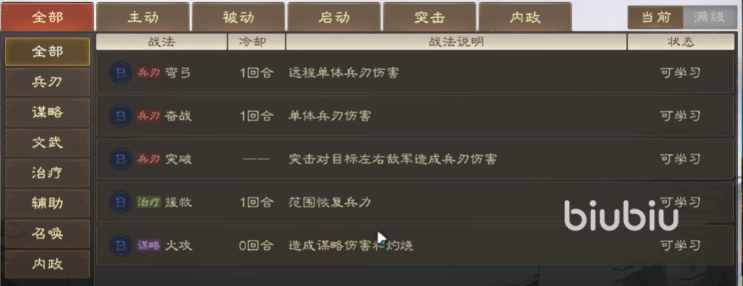 此外这里还有兵种与内政两类战法,这两个都和输出没关系,属于加成类的能力,所以对三国志战棋版战法类型不是很清楚的话,小伙伴们就可以看看上面分享的内容,希望对大家有所帮助。