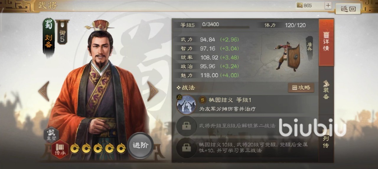 大部分人知道的人物基本都是那个时期比较出名的,基本游戏中也会就此强化他们的能力,第一个比较推荐的是刘备,他在此处的技能是属于辅助类型的,可能够为自家人员添加的效果是很高的,其中就有能够治疗伤者,减弱敌方属性的能力。