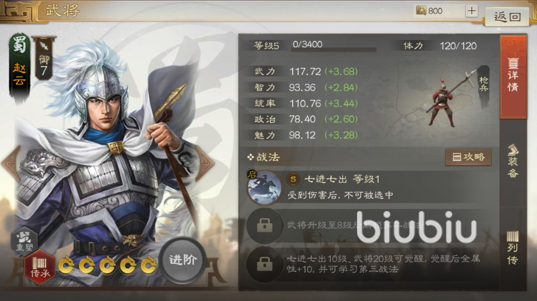 所以在前期的时候各位就可以选择他,毕竟大家刚开始的强度都不高,他能够发挥出较大的作用。第二个推荐的是赵云,他可以说是当时那个年代的名将了,在此处也是非常强势的存在,其中属性上武力值更是非常高。