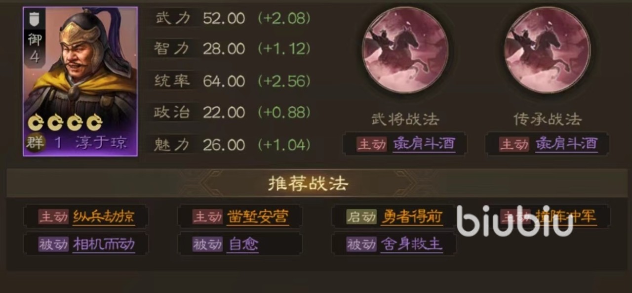 看完小编带来的攻略之后,大家应该知道三国志战棋版彘肩斗酒战法怎么用了吧,既然效果已经固定,那么我们就选择最合适武将去搭配,毕竟有如此多可选择角色,肯定其中能找到最合适人选。只要能将优势发挥出来。该战法完全不次于橙色技能。