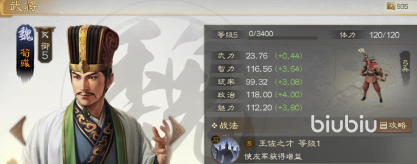 由于这个技能是谋略输出,其实更加适合让荀彧去使用。该角色同样为谋略型武将,属性面板上的智力还是很高的。搭配上他本身的技能,既可以为友军施加增益的buff,还能够让敌人受伤,非常OP。