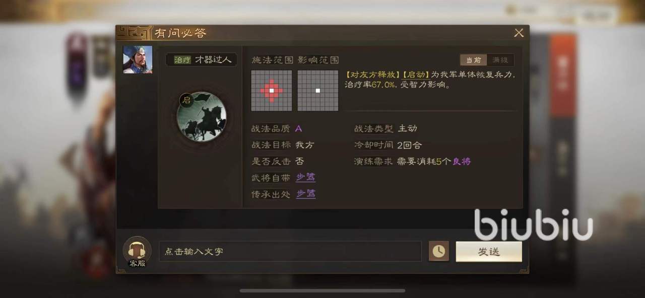 才器过人属于A级战法,是个治疗能力很优异的技能,当你给己方释放的时候,能够恢复更多的单体兵力。然后治疗能力也很强悍,并且你的智力越高,可以获得的治疗效果就越好。
