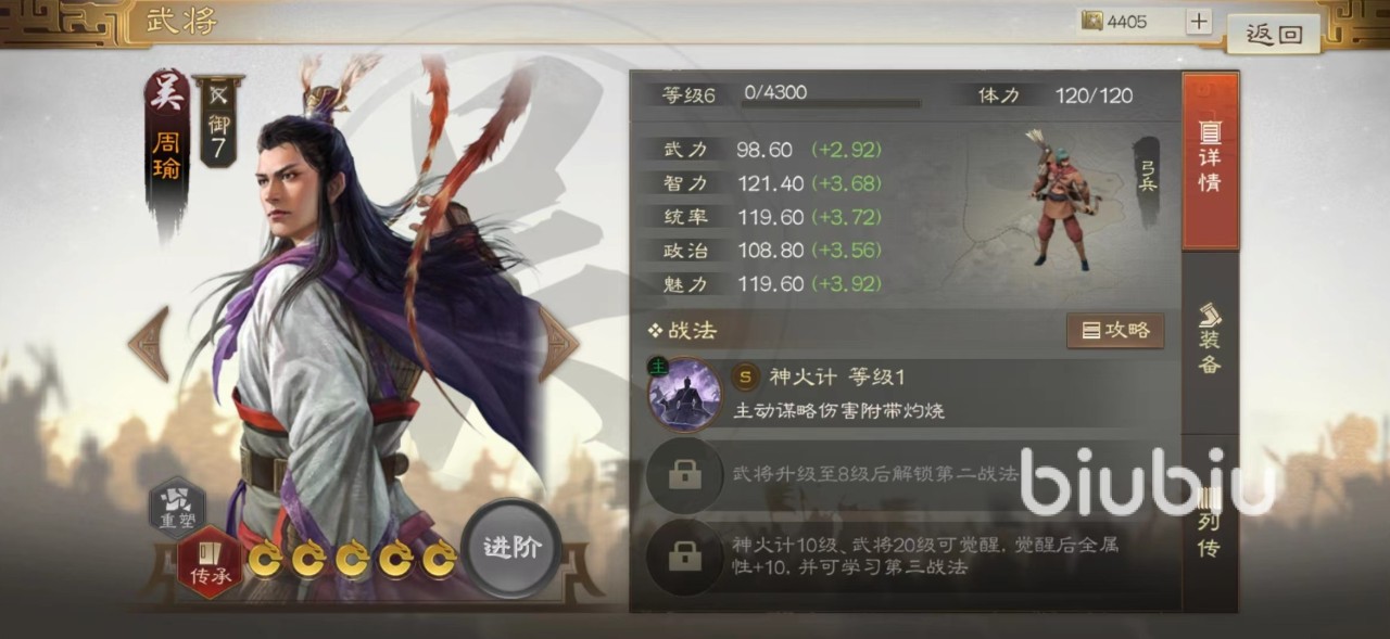 综合该技能所需要的条件,要有足够高的智力,不然就会浪费输出,然后需要大量异常状态,最好自身也能添加其他效果,这样能够叠加起来,对敌方限制更大。小编认为有两名武将非常合适,分别是周瑜和诸葛恪,周瑜是现在东吴纵火队核心领袖,本身就能依靠技能造成谋略伤害,再加上自身智力极高,完全有能力打出高额输出。而且自带战法被动效果还能为其附加灼烧状态,同样属于异常类效果。