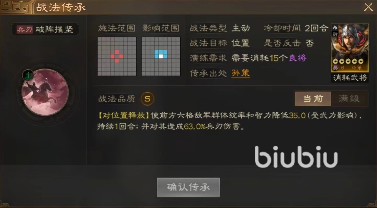 2023年03月20日 15:49 来源:战斧欲铁甲暴龙破阵摧坚往往形容武将攻击非常犀利,以推枯拉朽般状态冲破敌方阵型,以其为命名的战法在效果上也非常犀利,今天小编带来的就是三国志战棋版破阵摧坚战法推荐攻略。战法来自东吴小霸王孙策,核心武将所传承出来的技能自然效果不会差,那么具体在实战中能发挥出哪些作用,又该选择哪些武将去学习,一起往下看。