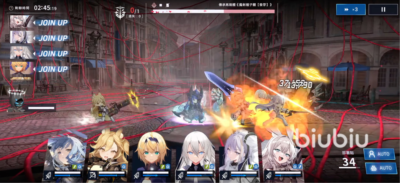 低层的难度较低,玩家可以轻松过关。到了中层开始,敌人的血量和防御有明显提升,建议按照固定的技能循环推进:先用洁洛释放击退技能稳定场面,紧接着布露开启增伤,欧拉丝叠攻后让卡侬释放BLADE完成第一轮爆发,随后用雅莉丝的群攻清理剩余敌人。