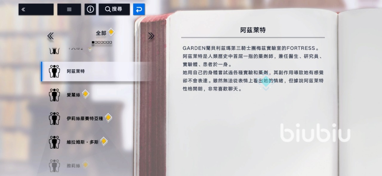 从官方公布的人物资料来看,阿兹莱特被描述为人类史上顶尖的药剂师,同时还是实验体、患者和研究员。她会毫不犹豫地把自己作为实验材料,不断尝试新的药剂和能量饮料。副作用虽然存在,但她始终用冷淡的外表掩饰这种痛苦。而在性格上,她其实十分开朗,喜欢与人交流。这份外冷内热的矛盾气质,让她在角色群像中格外独特。