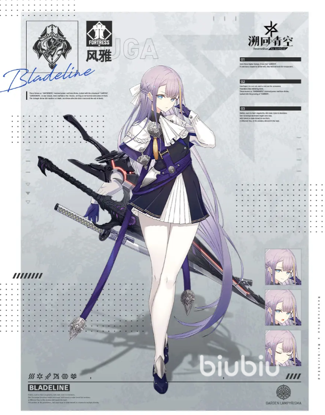 风雅的特性是在出击时,恢复12部署点,她的“鬼哭”会向前方放出3次40%物理攻击,随后每1秒对周围形成10%物理伤害,持续10秒时间,她的“士道天瞑流”会向着前面的稍大范围进行攻击并附带击退效果。