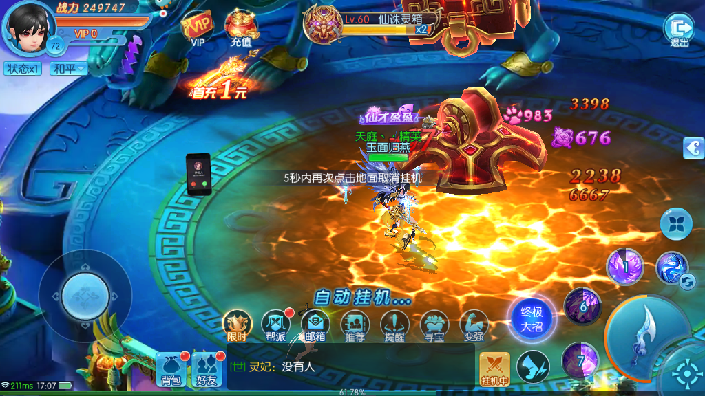 玩家角色的攻击方式最好选择单体技能,这样可以有效的对敌人造成高额的暴击、暴伤。不过,敌人的生命值一旦损失过快,在随后的战斗当中,就会采取跟多的范围攻击技能。宠物和仙仆在此期间会受到大量的伤害,玩家们一定要控制要角色躲在范围技能之外。当敌人施展一次范围技能之后,玩家们大概有10秒的时间进行反击。