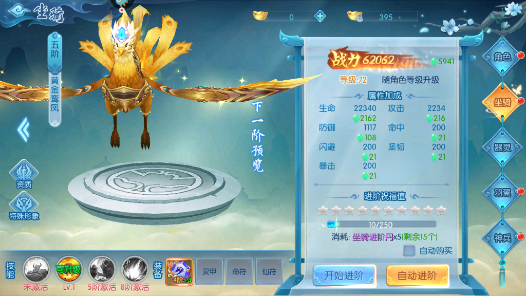 如果是法术型的职业,推荐玩家们使用黄金鸾凤。该宠物的群体伤害能力非常强大,自身也有非较强的法术伤害。配合上玩家角色的法术攻击,能对敌人造成更加高额的法术穿透。尤其是培养到了五阶之后,会直接开启猛力技能,永久提升玩家角色200点攻击力。不要小看这一属性,在后期的作用非常大。