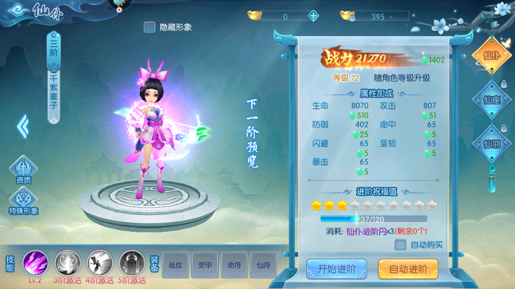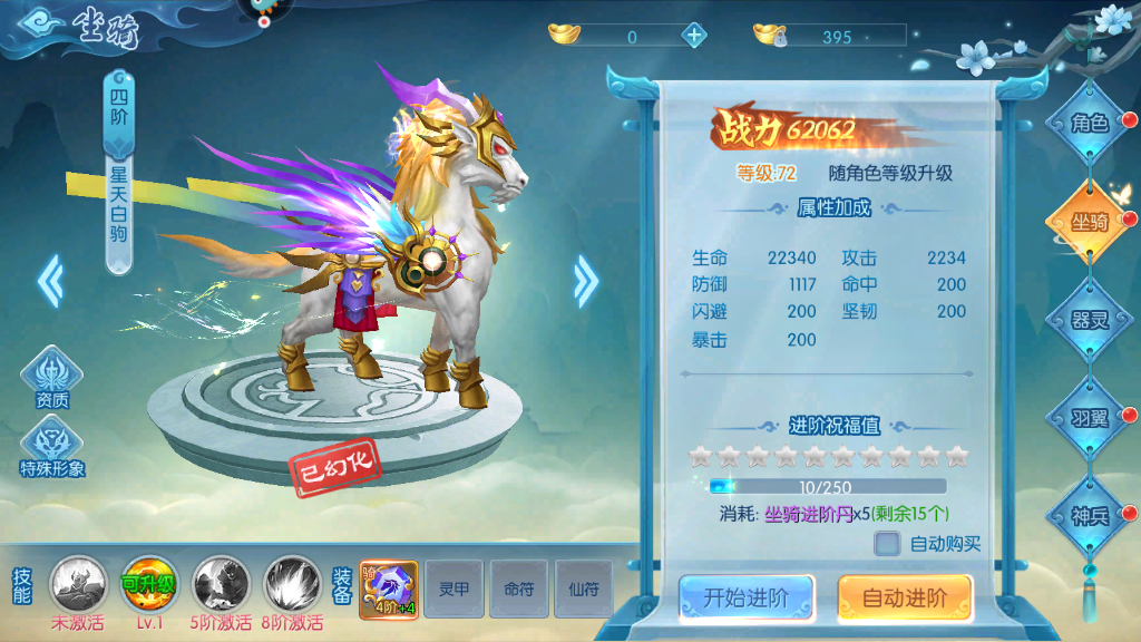 首先,如果玩家们选择的角色职业为剑姬,主要的攻击方式为物理伤害。那么在宠物的选择上,就尽可能的使用星天白驹。该宠物能够快速提升玩家的战斗力,并且攻击技能非常多样化,适合与大数量的敌人进行战斗。在培养到了四阶之后,攻击力直接可以达到2222,凭借强大的输出能力,就可以帮助玩家应对更多的困难。