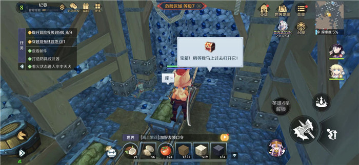 3、往哥布林营地里面走,就可以看到一群哥布林围绕着蓝色宝箱,需要击败周围的哥布林就可以开启宝箱。