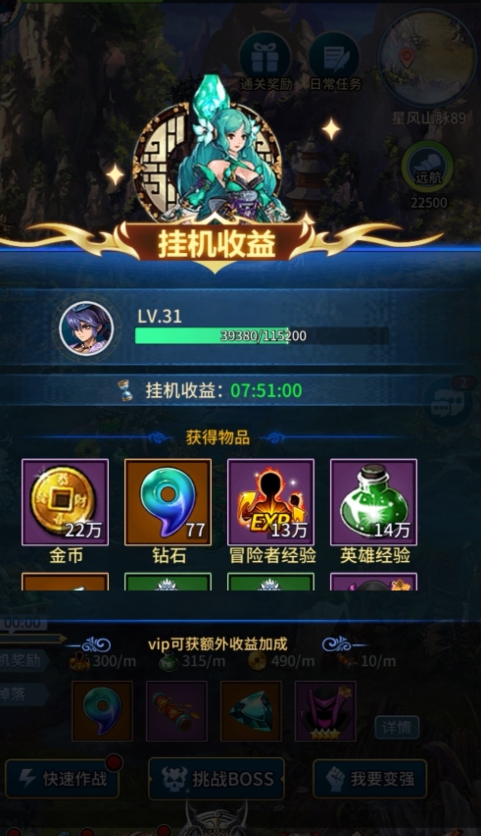 第三个【挂机奖励】,玩家在离线状态下所能得到的挂机收益是包含着大量的英雄经验的。