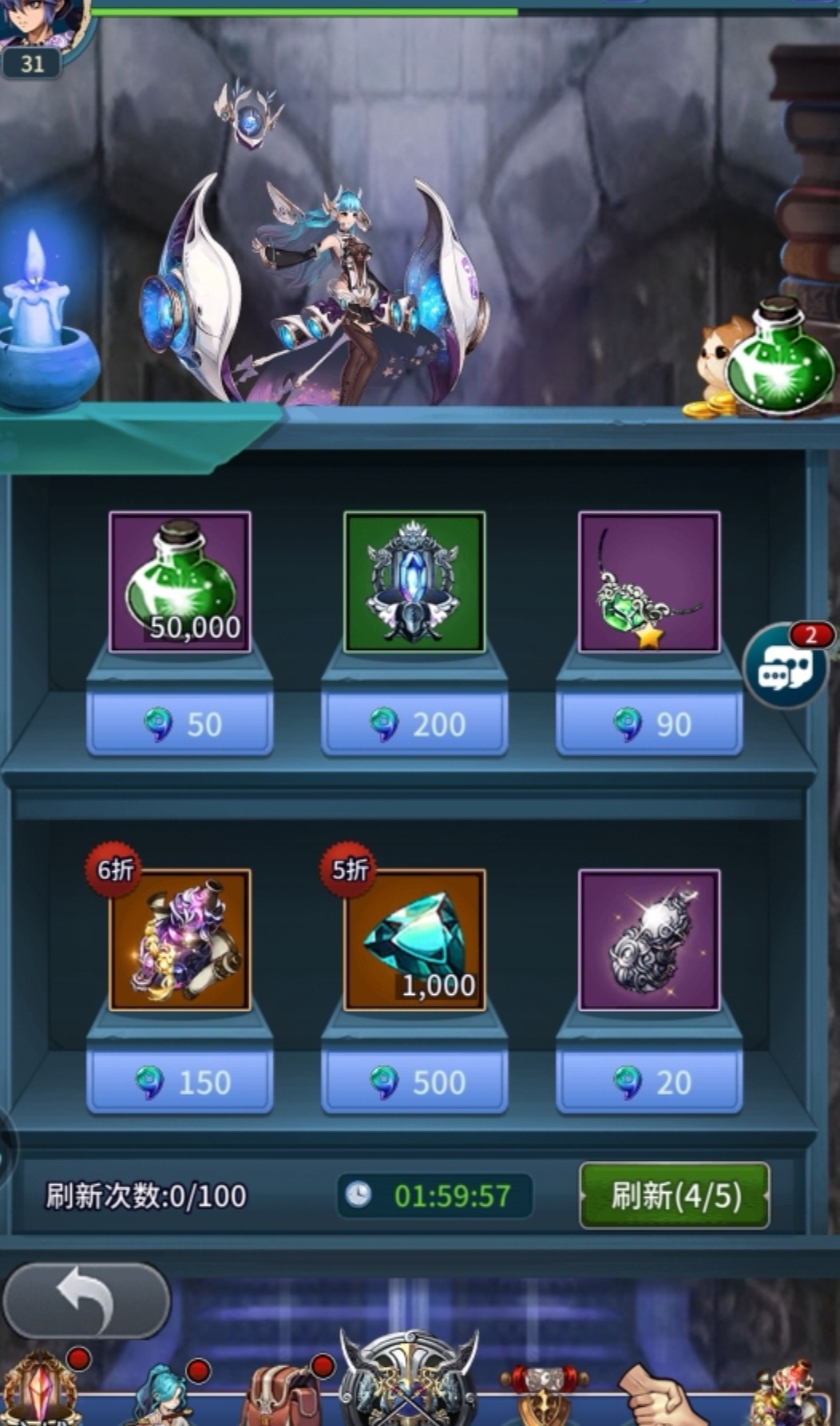 第六个【精灵商店】,精灵商店中有着许多商品,其中便有着英雄经验在售卖,如果第一次没发现,玩家可以多刷新几次就能刷出来了,英雄经验可以通过金币与钻石两种方法来购买得到的。