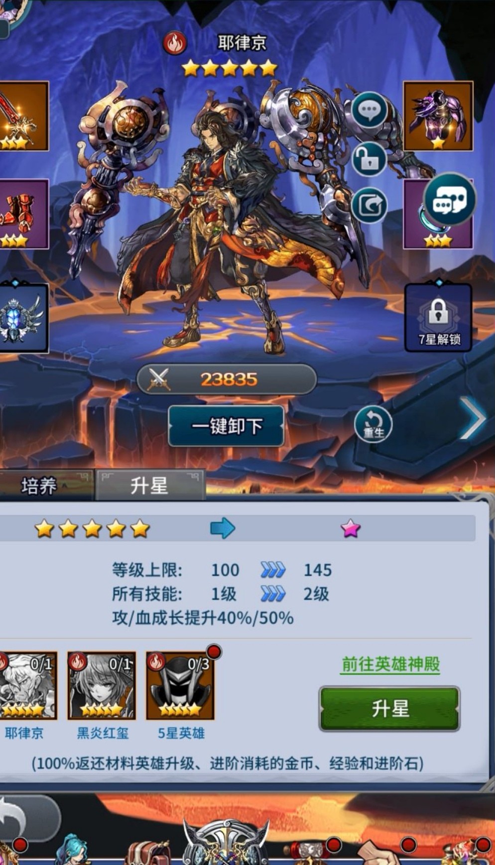 玩家只要可以合成两个六星英雄,六星英雄的合成是需要几个五星英雄以及几个四星英雄才能够合成的,而且还对英雄系别有着限制,玩家可以多去召唤英雄这样才能够更快获得六星英雄。