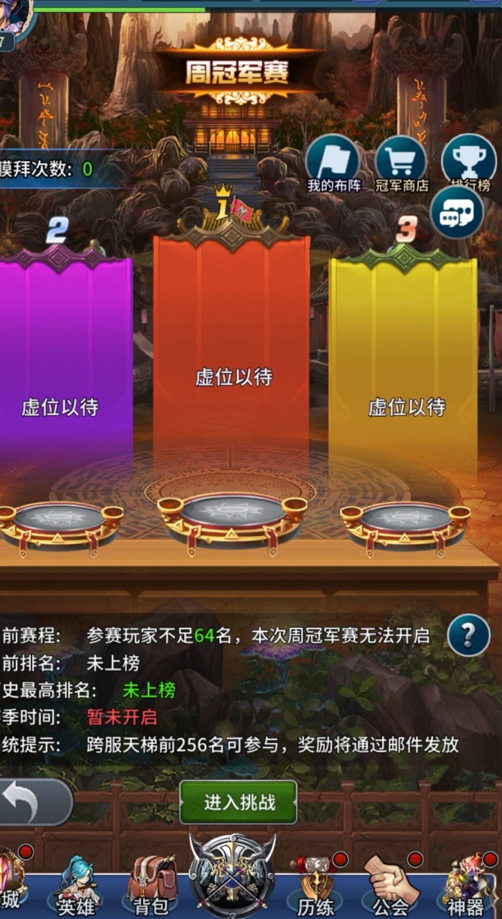 玩家只要参加六次的周冠军赛即可完成任务,但是周冠军赛需要64名玩家才可以开启的,否则无法进行。