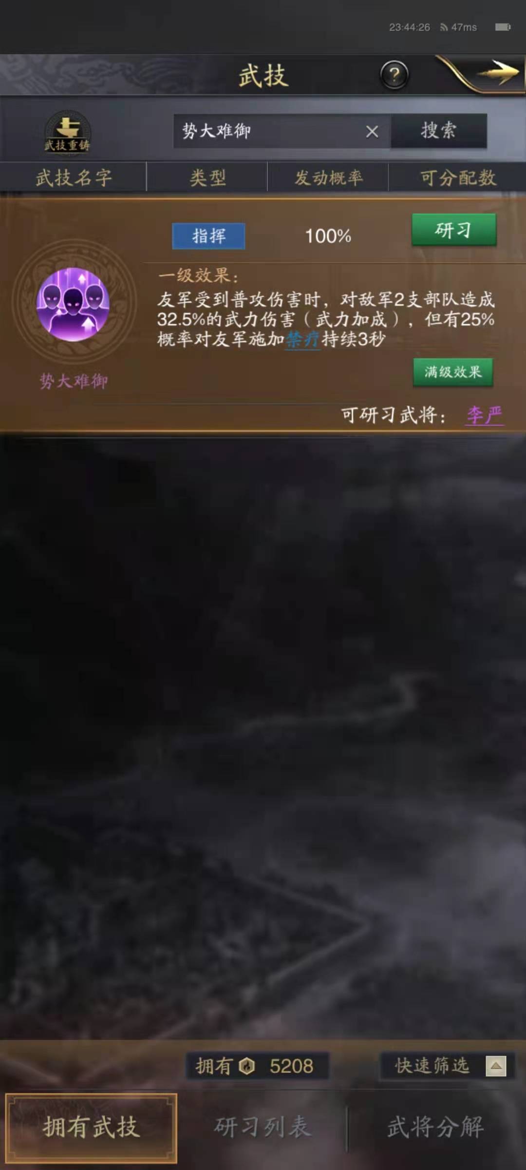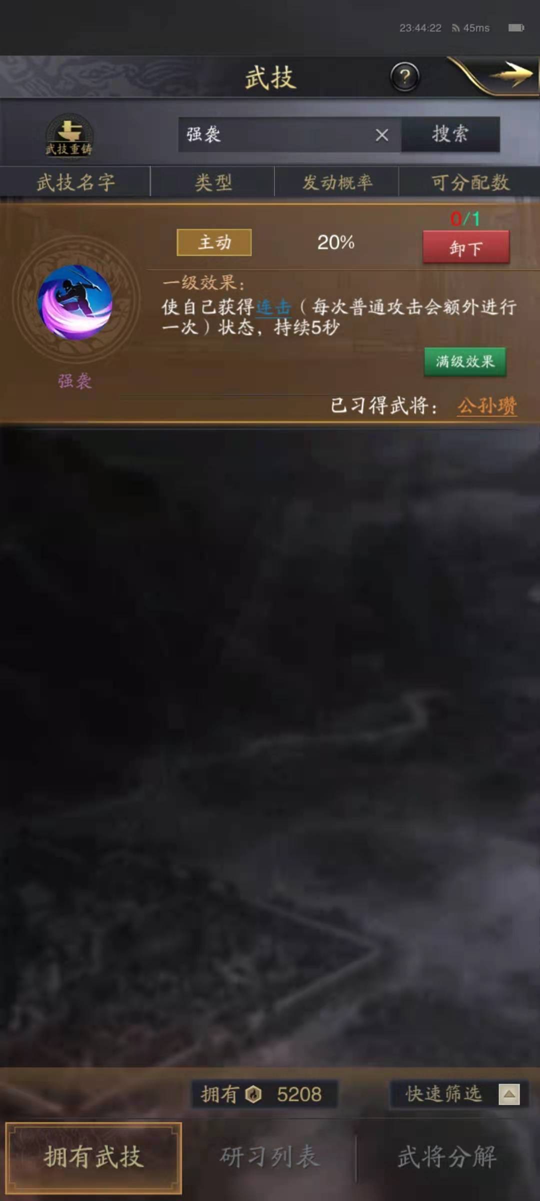其中强袭的效果是使得自身有几率获得连击效果,在使用普攻攻击的时候,可以触发连击,多打出一下伤害,多打出伤害就相当于多叠加了怒斧BUFF,尽量叠加到满层。势大难御的效果是在友军被普通攻击的时候,徐晃有几率对敌方的两名武将造成反击伤害,这个技能的效果也是为了多造成武力伤害,从而快速叠加BUFF。