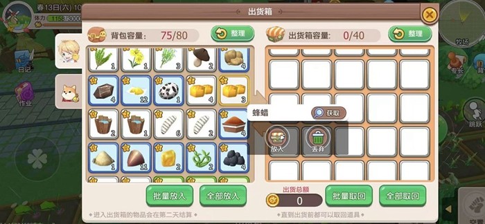 第二个就是节流,游戏中有些物品是可以叠加的,但是不同品质的素材是无法叠加的。品质高的物品出货的收益就越高,所以建议大家使用整理箱积攒物品,等到高品质物品达到堆叠上限之后再放入出货箱中,理论上就能够提升我们的出货几率。