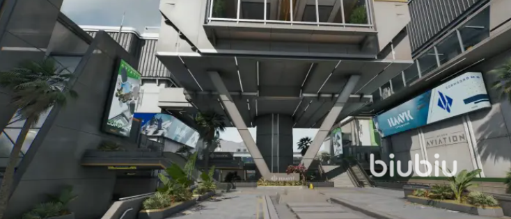 整个航地基地地图按照功能可以划分为发射区、核心区、工业区、宿舍区这四大区域。核心区周围有水渠与围墙,将外围隔离开来。通过中控楼和航天城核心区之间的中控桥来连接,在准备过桥的时候要当心守桥人敌人。如果手头有员工通道或是其他入口的门卡,那么则有更为安全的线路。
